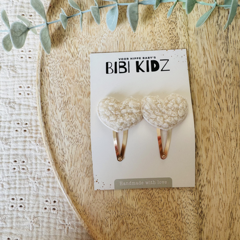 Haarspeld Hart Teddy NaturelSchattig haarspeldje met hartjes Ze zitten op een aligator van 4 cm.