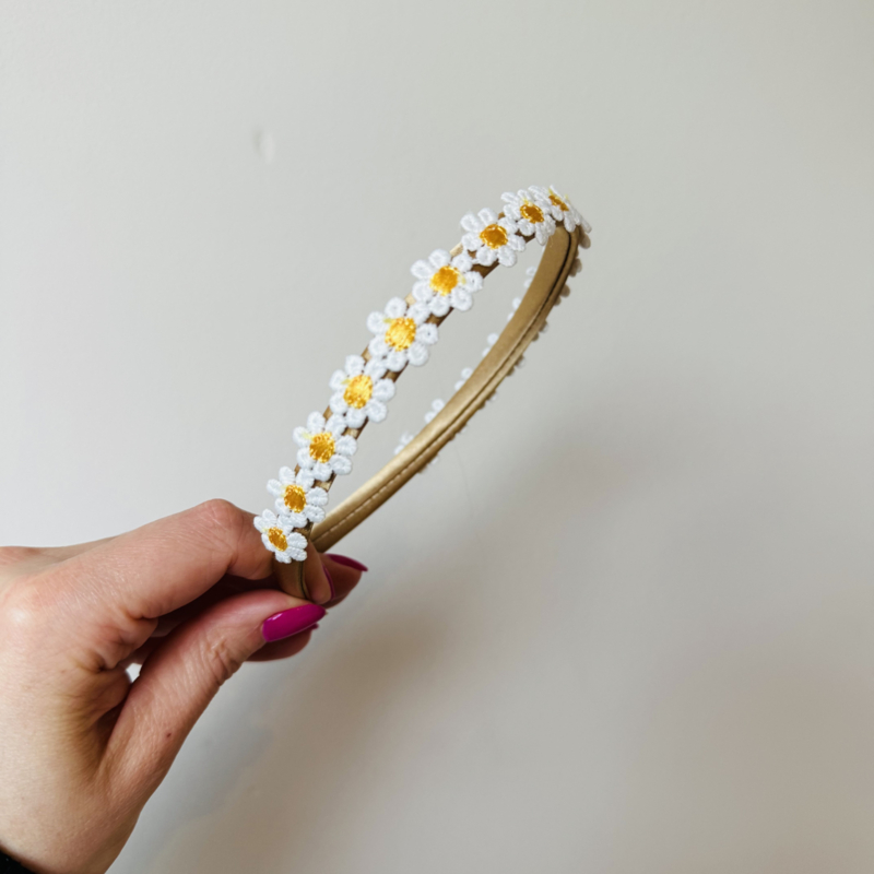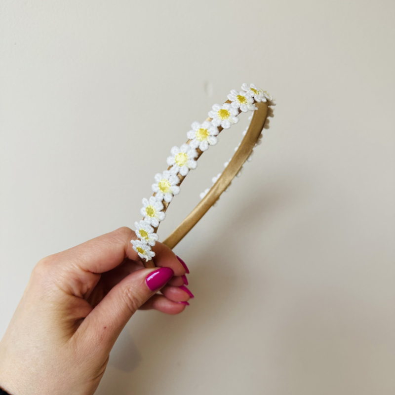 Haarbandje Bloemen SandEen schattig haarbandje met daarop leuke madeliefjes. De haarbandjes zijn erg rekbaar waardoor ze al door baby's gedragen kunnen worden maar ook door oudere kinderen.