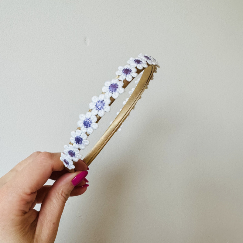 Haarbandje Bloemen PaarsEen schattig haarbandje met daarop leuke madeliefjes. De haarbandjes zijn erg rekbaar waardoor ze al door baby's gedragen kunnen worden maar ook door oudere kinderen.